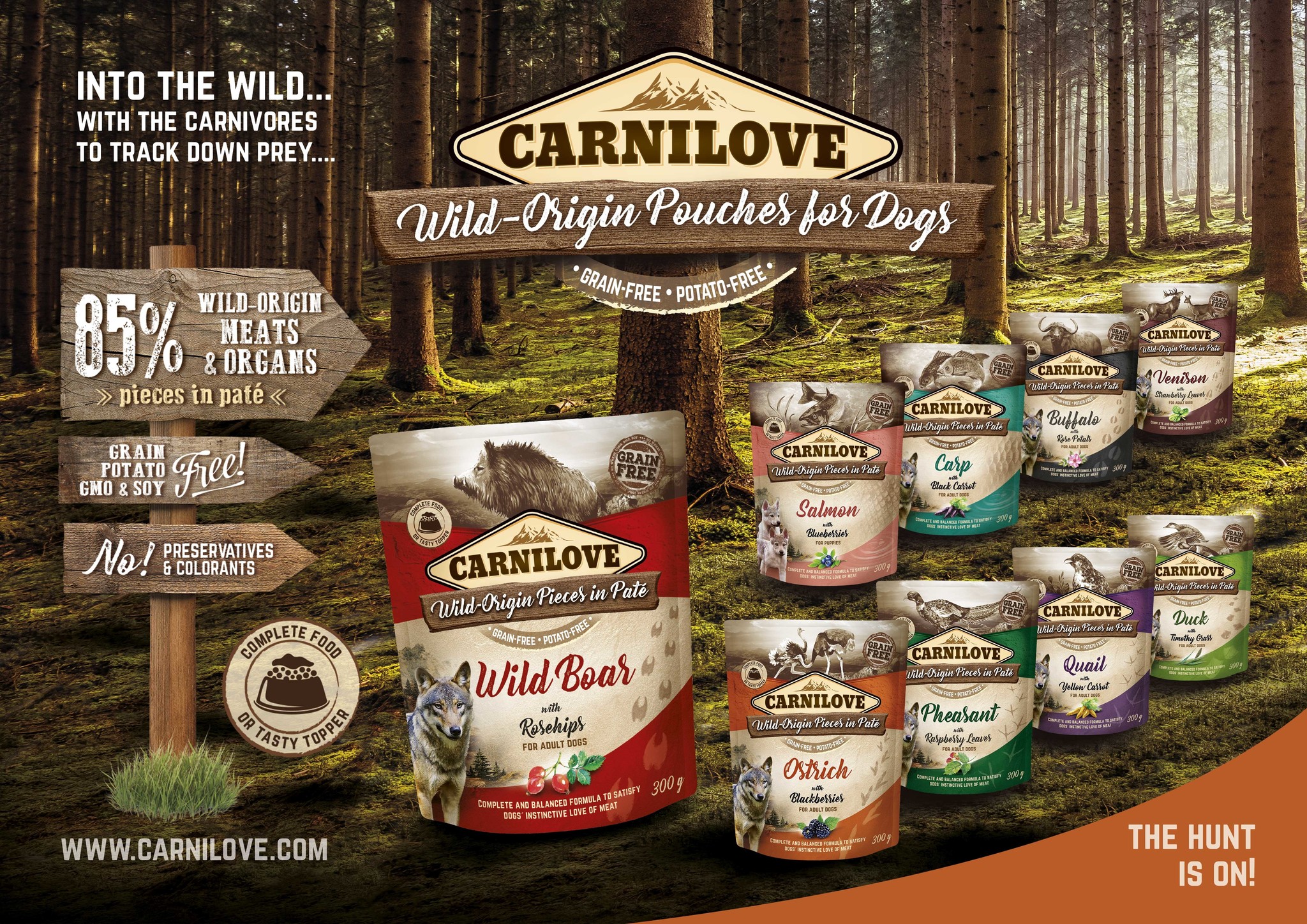 Carnilove Paté zakje bestaande uit heerlijk vlees en organen van een wild oorsprong. Te gebruiken als complete voeding of als heerlijke topping over je Carnilove brokken. Carnilove gebruikt unieke soorten vlees en is compleet vrij van granen en aardappel of soja. Ook worden er geen conservering middelen en kleurstoffen gebruikt.
