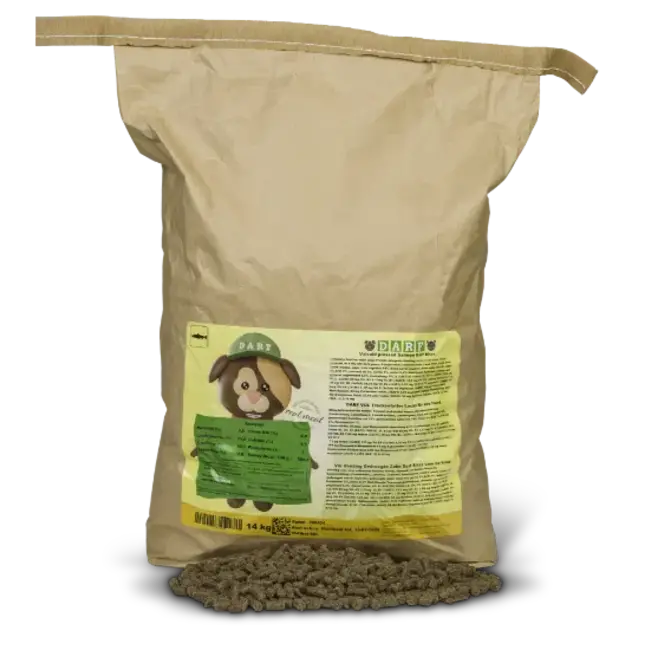 Let op! Kijk altijd goed naar je hond en hou toezicht tijdens het eten en houd rekening met voldoende drinkwater. Bewaar Darf brokken Droog, koel en donker.