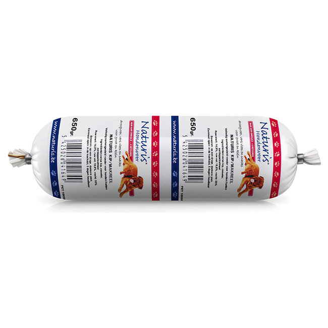 Let op! Kijk altijd goed naar je hond en hou toezicht tijdens het eten en houd rekening met voldoende drinkwater. Bewaar Naturis houdbare worst kip/makreel Droog, koel en donker.